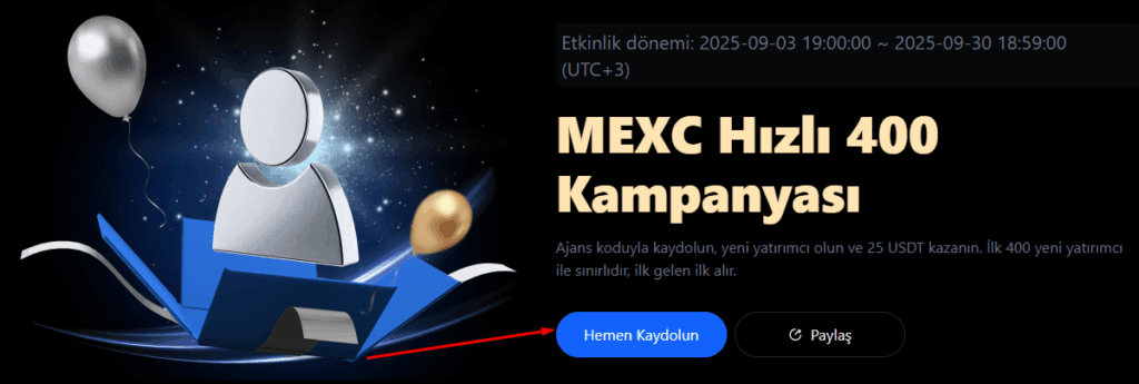 📌 MEXC Hızlı 400 Kampanyası – Şartlar (03 – 30 Eylül 2025)